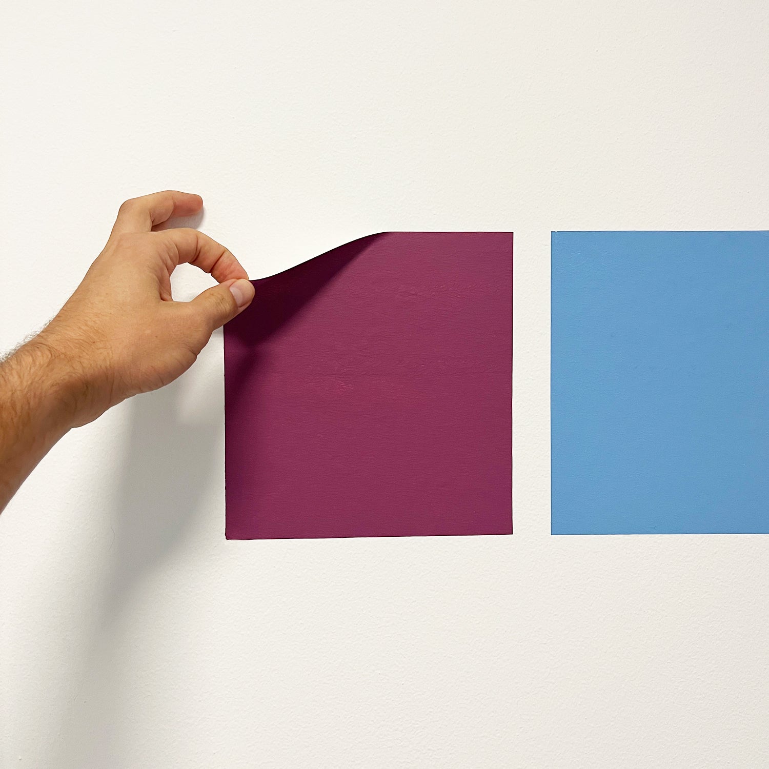Per fugare ogni dubbio fra più colori da scegliere e se vuoi provarli all'interno del tuo ambiente, abbiamo questa opportunità per te: fogli adesivi attacca/stacca con applicata la pittura reale. Essi sono riutilizzabili più volte così da poterli posizionare su diverse pareti, per verificarne l'effetto in più posizioni e sotto differenti luci.